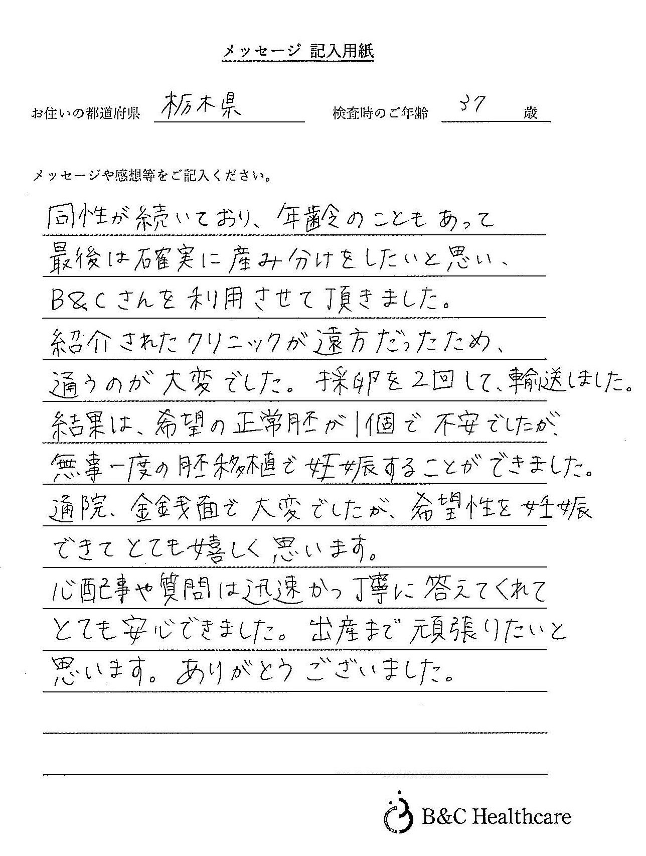 事前カウンセリングから、何事もスムーズに進行できて、自分の夢を叶えるきっかけを作って頂き、今回B&Cさんとご縁がもてた事に、感謝しております。また出産したらご報告させて頂きます(*˘︶˘*).。.:*♡
